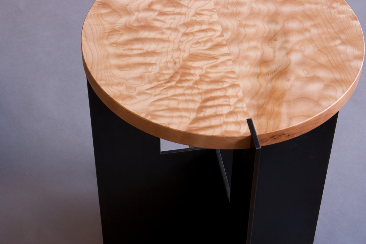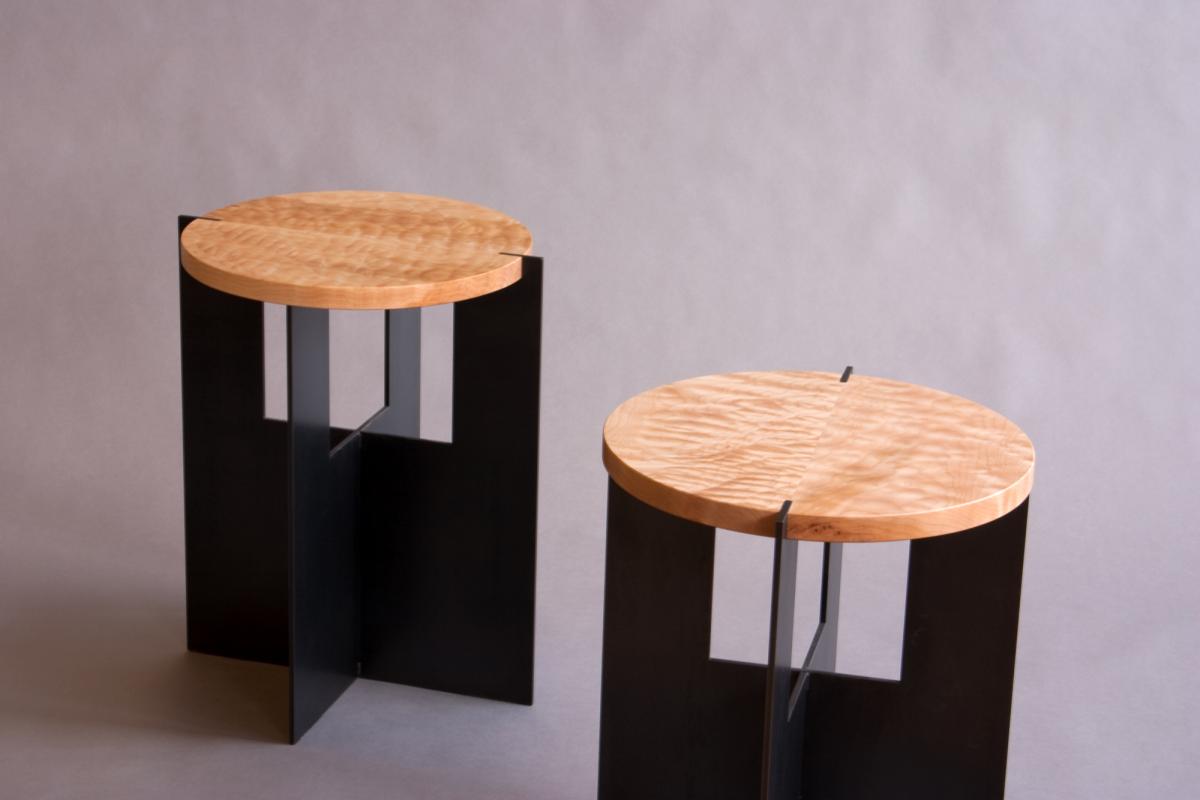 The Mika end tables are a perfect complement to a modern living space or to that classic Seattle bungalow. The forms are simple, but they express a sculptural essence quite beyond the sum of their parts. The steel base is grounded and solid. The top floats above the steel, with a richness of color and figure in the wood that is seductive. Together, the materials harmonize and bring beauty and elegance to their surroundings.